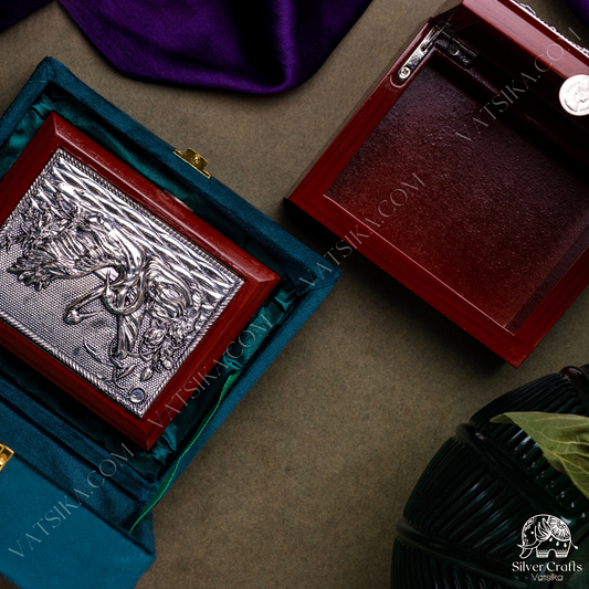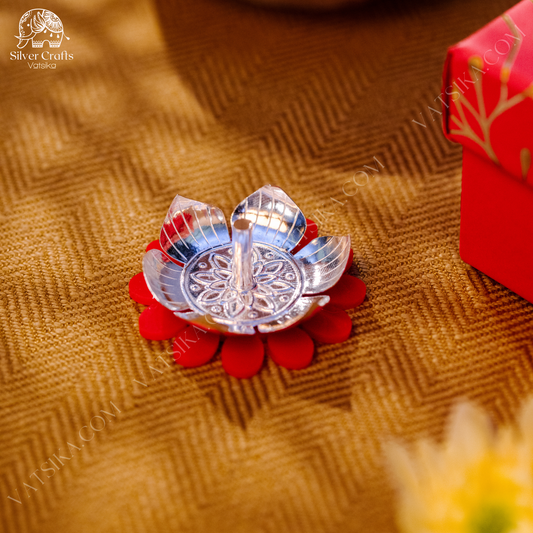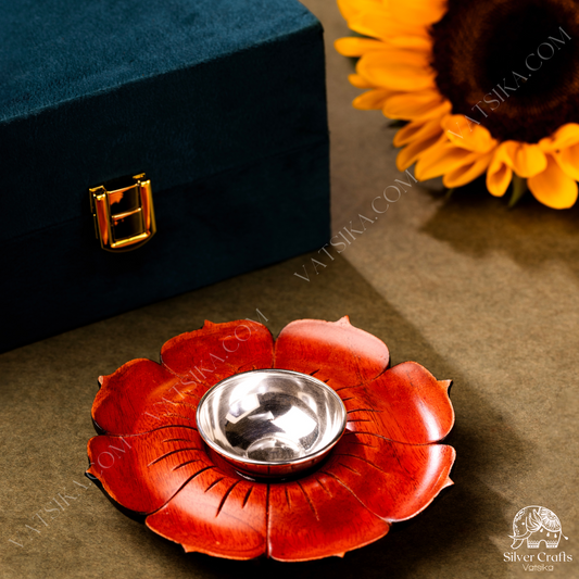 Silver 3 Cup Prasadam Bowl with Rosewood Stand