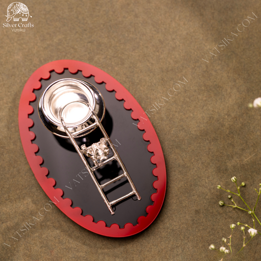 Pure Silver Butter Bowl with Sri Krishna Climbing Ladder